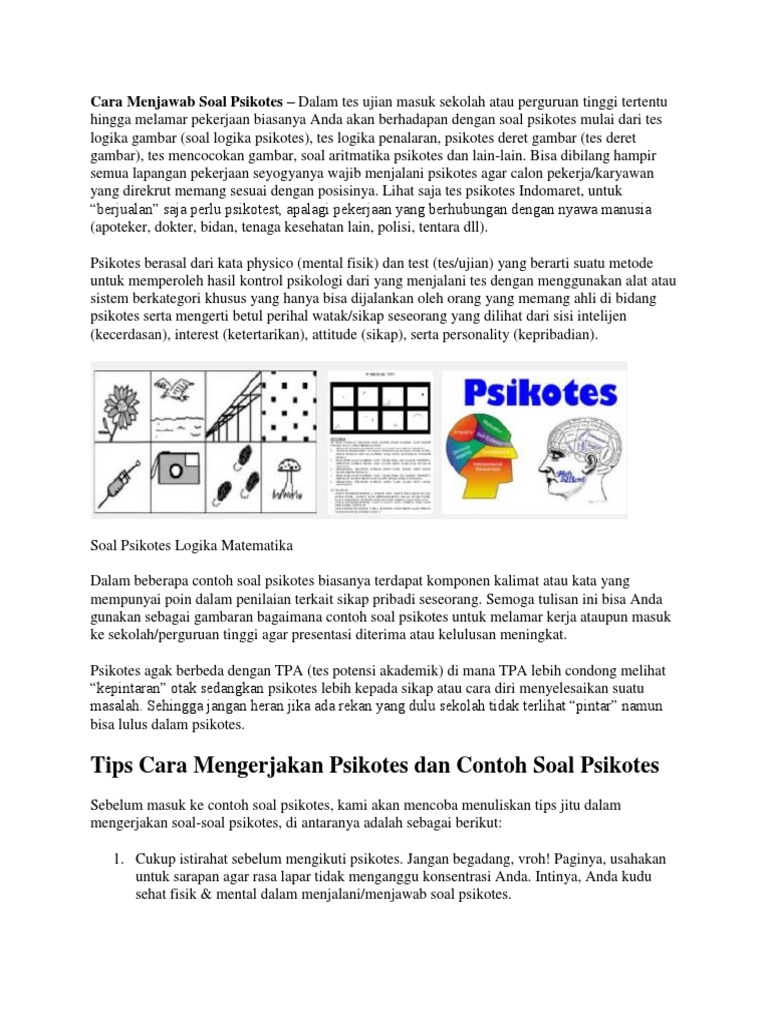 Latihan soal tes cpns paling lengkap, download saja kumpulan soal tes cpns di web ini. Contoh soal psikotes hitung hitungan berikut ini kami berikan bocoran 7 jenis soal psikotes yang sering keluar di bank, bumn dan pt 4 tips mengerjakan tes logika aritmetika perhatikan polanya karena pola bisa berupa pertambahan dan pengurangan, atau kelipatan, dll misal contoh pada nomor. C, karena penulisan bulu tangkis harus dipisah. Soal deret angka klik disini. Kumpulan contoh soal psikotes matematika, logika, gambar, algoritma, deret angka untuk masuk cpns, guru, kerja karyawan, polri, tni, pramugari, dokter tips dan trik nya adalah dengan melihat dan menyesuaikan angka pada petunjuk soal, angka 6 sejajar dengan huruf a, angka 5 sejajar dengan. Jenis dan contoh soal psikotes tes analog verbal a. Setiap angka dikurangi dengan bilangan genap dimulai dari bilangan genap 2. Contoh soal psikotes masuk kerja cpns bumn swasta dan. Contoh soal cpns sudah banyak beredar di internet. Contoh soal psikotes logika aritmatika (deret angka). Contoh soal berikut contoh soal tes logika aritmatika. Contoh soal psikotes matematika, gambar. Home » soal psikotes » soal tpa » contoh soal dan pembahasan psikotes (logika angka).