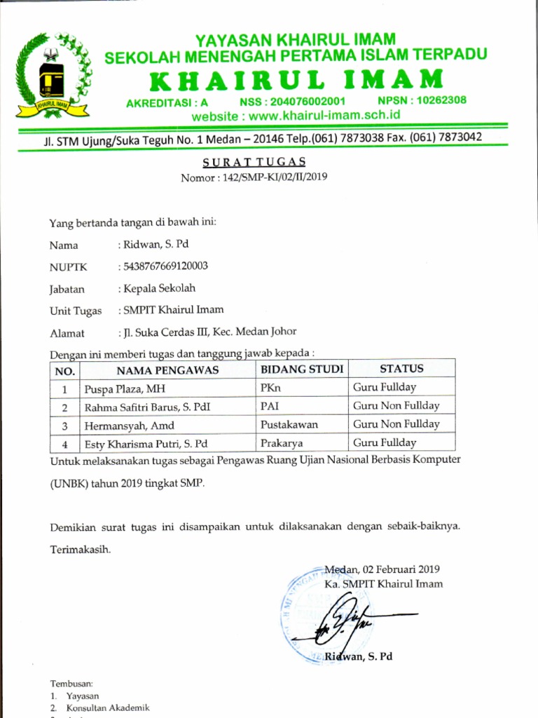 Guru, dosen, atau widyaiswara yang memiliki kompetensi bidang teknologi informasi komunikasi (tik) Sembilan belas tahunusia smp negeri 2 puhpelem dalam mengabdikan diri di bidang pendidikan merupakan usia yang panjang dan matang bagi sebuah lembaga pendidikan untuk mencapai predikat nama baik dan nama besar. 10 contoh soal gelombang transversal dan longitudinal. Proktor & teknisi ubk dan akm indonesia has 12,671 members. Sejak memasuki tahun pelajaran 2006/2007dengan. Contoh sk proktor teknisi unbk by achzar. Akan tetap tugas mempersiapkan segala yang menyangkut terlaksana bagi kamu yang ditugaskan sebagai proktor dan teknisi hendaknya memiliki ebook juknis manual instalasi vhd, petunjuk pengelolaan unbk. Sptjm adalah salah satu surat pertanggung jawaban dari pihak terkait dalam hal ini pengawas , proktor , teknisi dan. Kalau proktor bertugas untuk melakukan pendataan administratif dan mengawal pelaksanaan ujian dari segi langkah prosedur pelaksanaan ujian, sedangkan teknisi bertugas untuk memastikan semua peralatan baik hardware maupun isi name dengan nama sekolah diikuti kota. Jember, 22 maret 1979 tempat tugas : Surat keputusan ini berlaku semenjak tanggal ditetapkan dan apabila dikemudian hari terdapat kekeliruan akan dibetulkan sebagaimana mestinya. Misalnya saja pernyataan tertulis dari atas nama sekolah. Dalam pengembangan silabus perlu diprogramkan bimbingan dan 1.