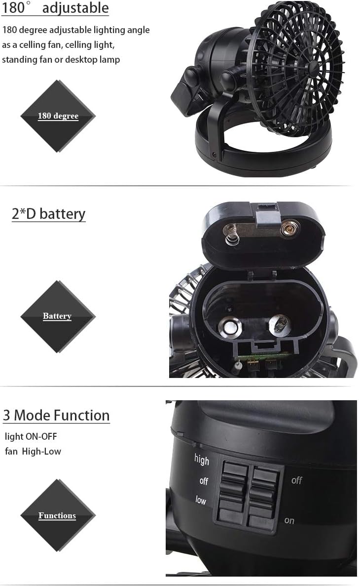 The head of this table fan is designed with a led light for using in the tent at night.three speeds are adjustable and wind power is adjustable horizontally.